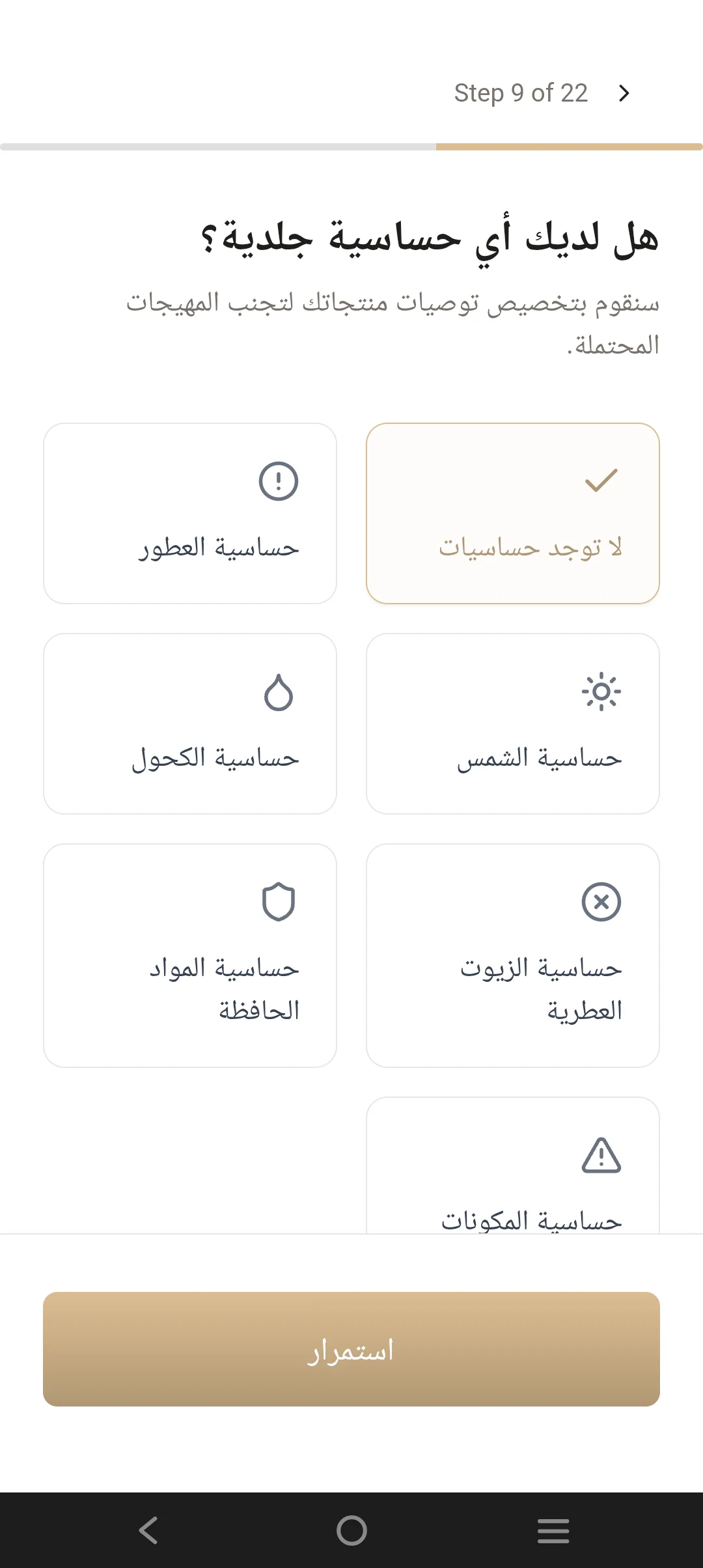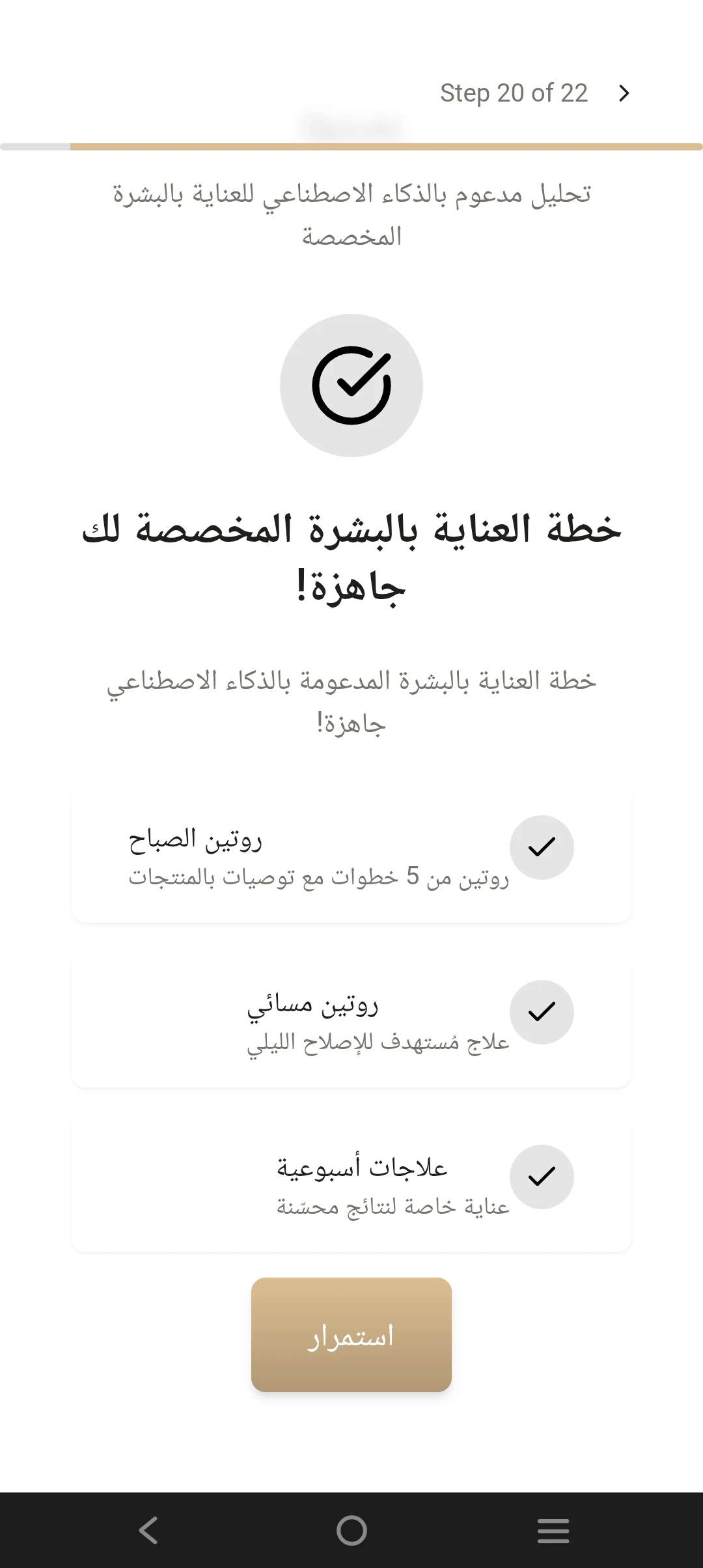 - افتح التطبيق بعد التثبيت وابدأ بتحديد نوع بشرتك والروتين المناسب لك.