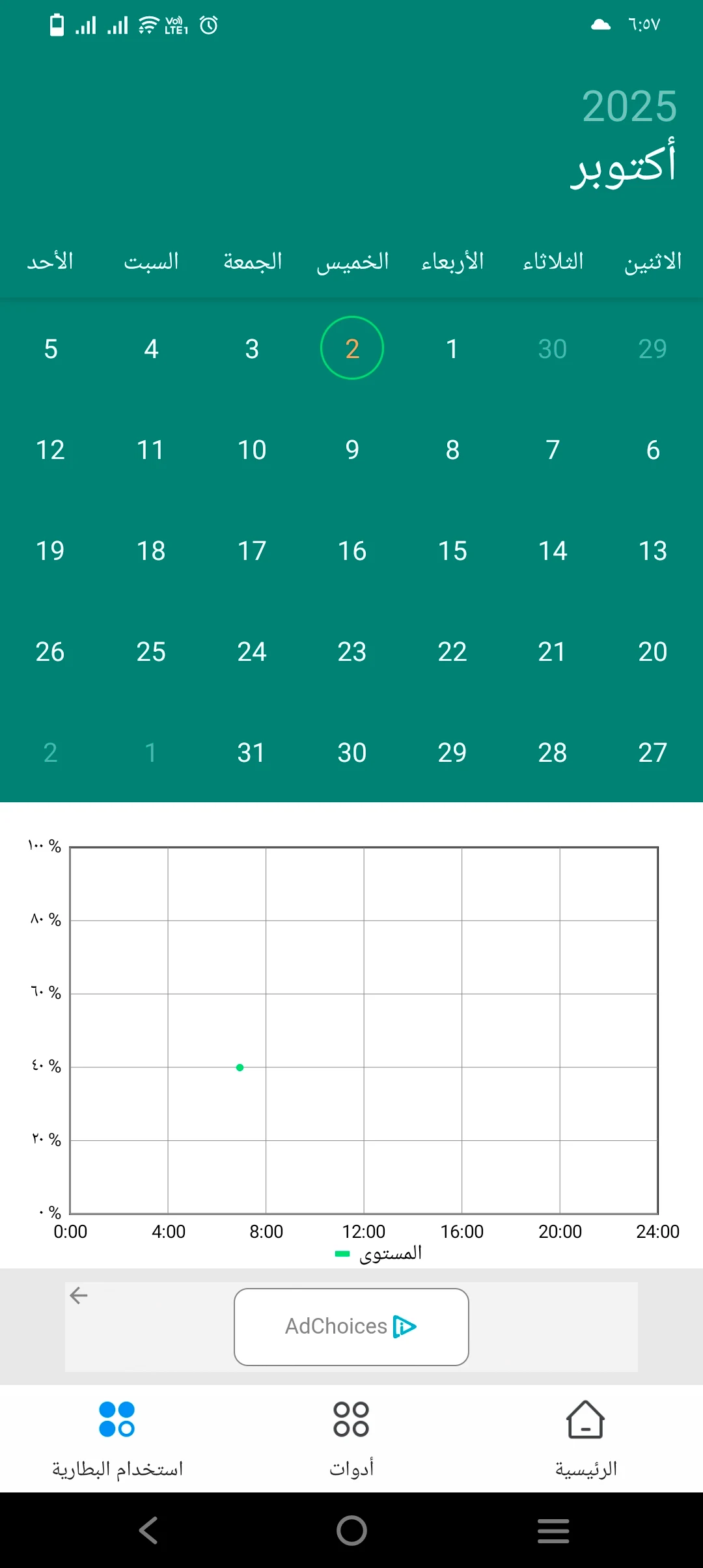 • هل التطبيق يعرض معلومات عن حالة البطارية؟