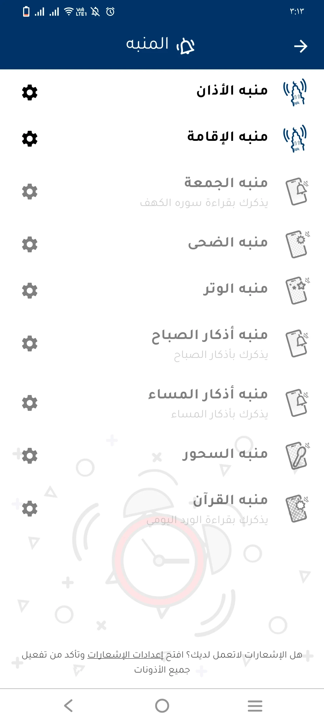 3. هل يمكن ضبط التنبيهات للأذان والأذكار؟