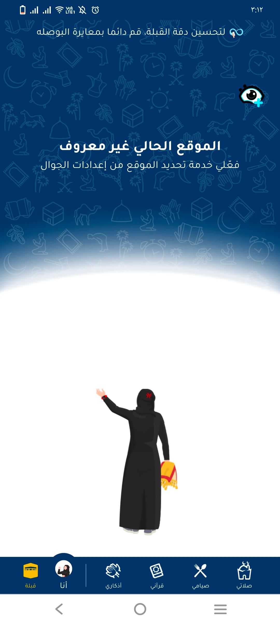 لتحديد أوقات الصلاة واتجاه القبلة بشكل صحيح، تأكد من تفعيل خدمة الموقع على هاتفك واختيار دقة عالية.