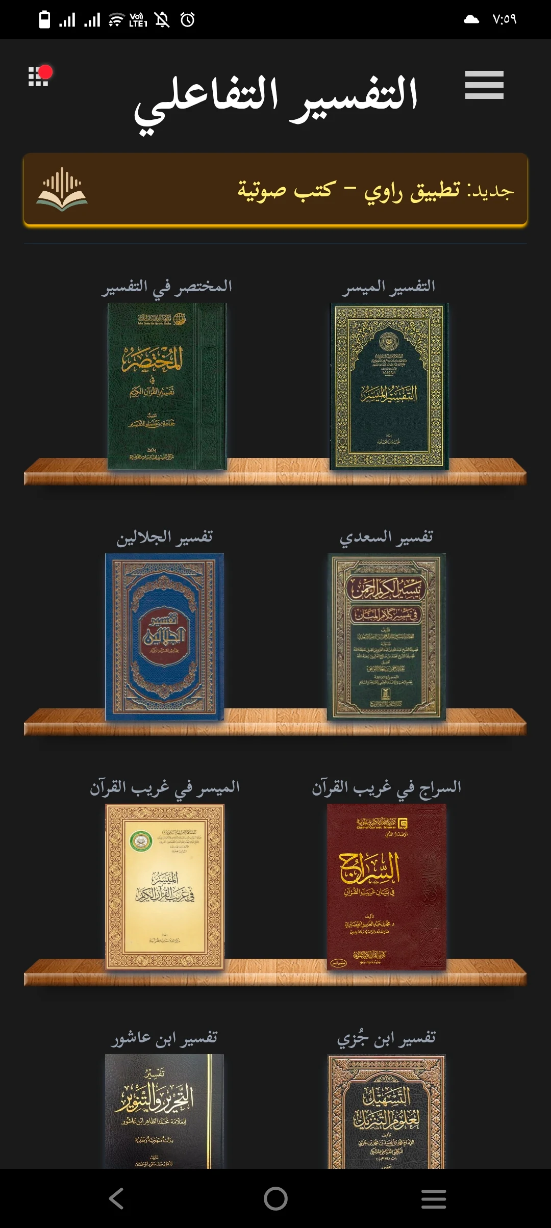 • المميزات: تفسير مجموعة كتب كبيرة في تطبيق واحد.