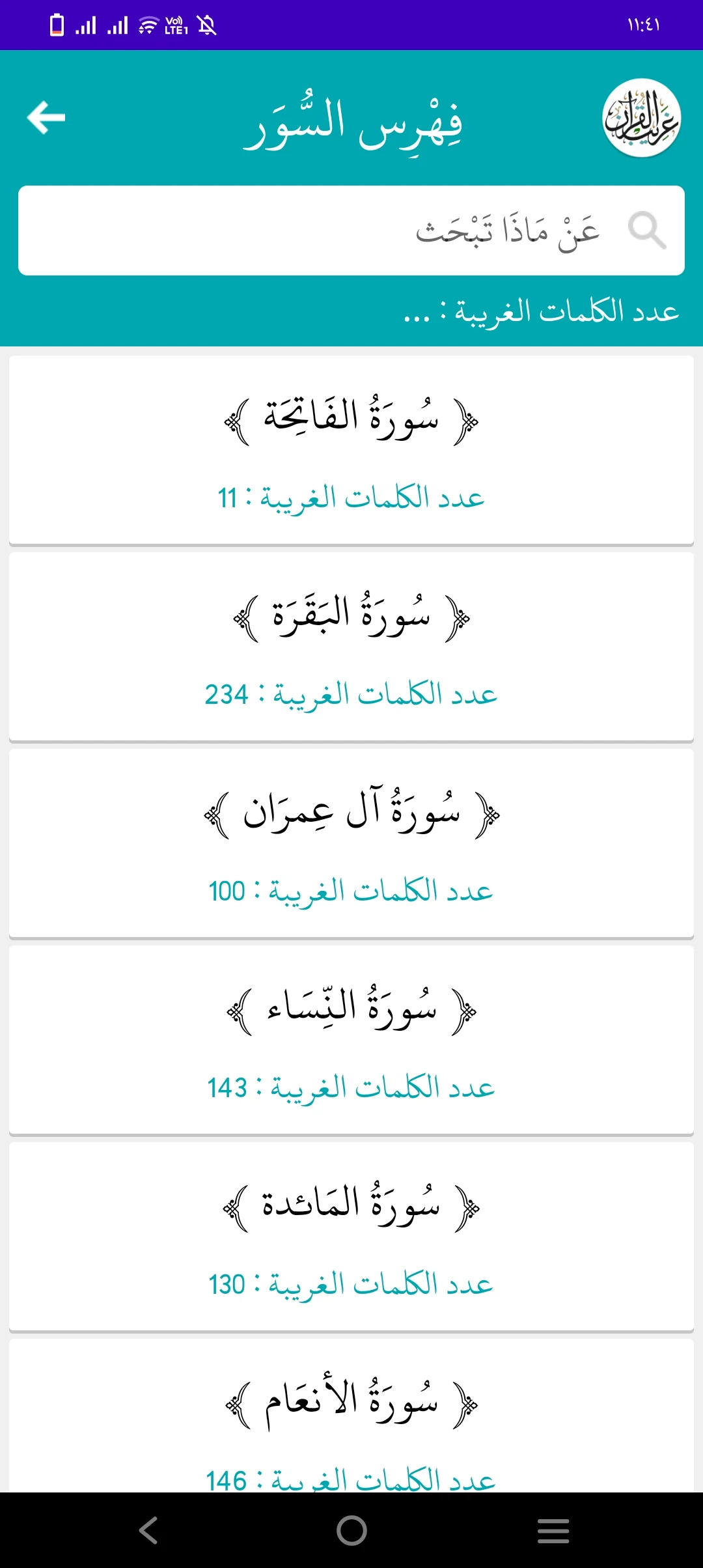 يمكنك كتابة أي كلمة قرآنية غير واضحة لك داخل محرك البحث في التطبيق، وستظهر لك معناها وتفسيرها بطريقة مبسطة وسهلة الفهم، مما يسهل عليك تعلم المفردات بسرعة.