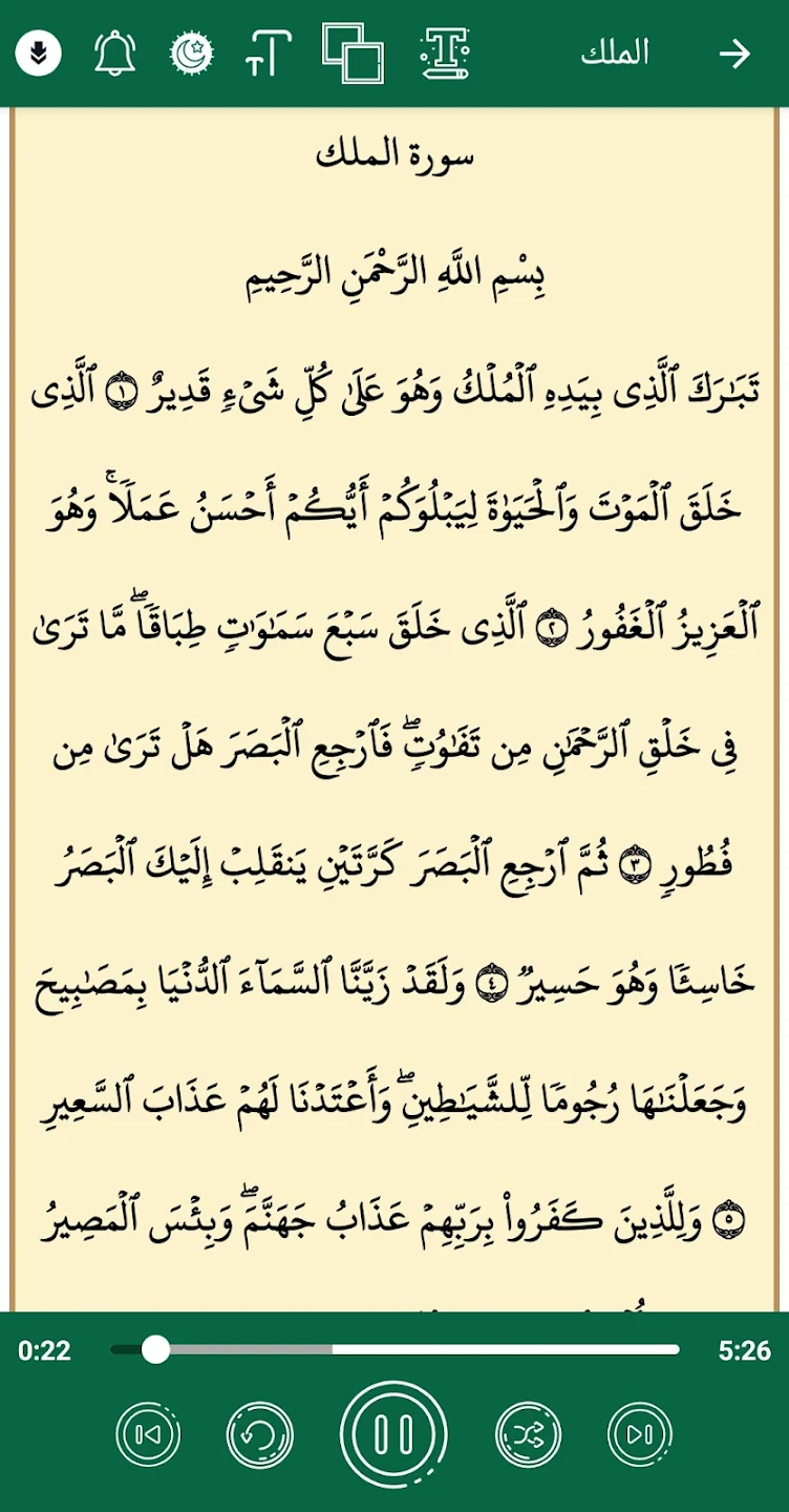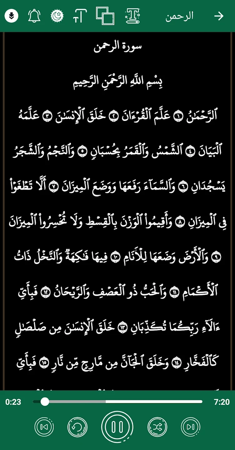 • مفيش صوت للتقليب بين الآيات أو عند الضغط على السبحة